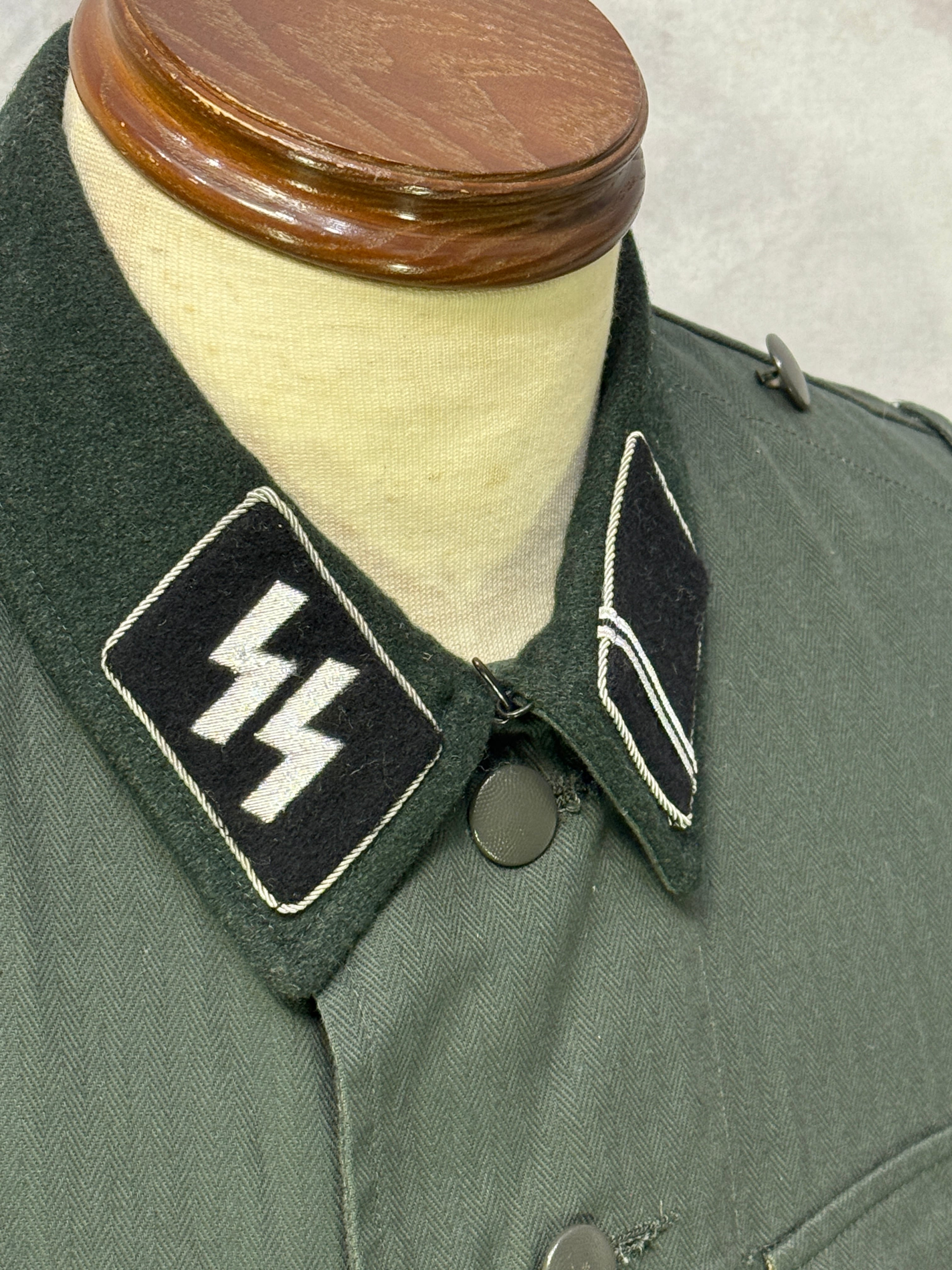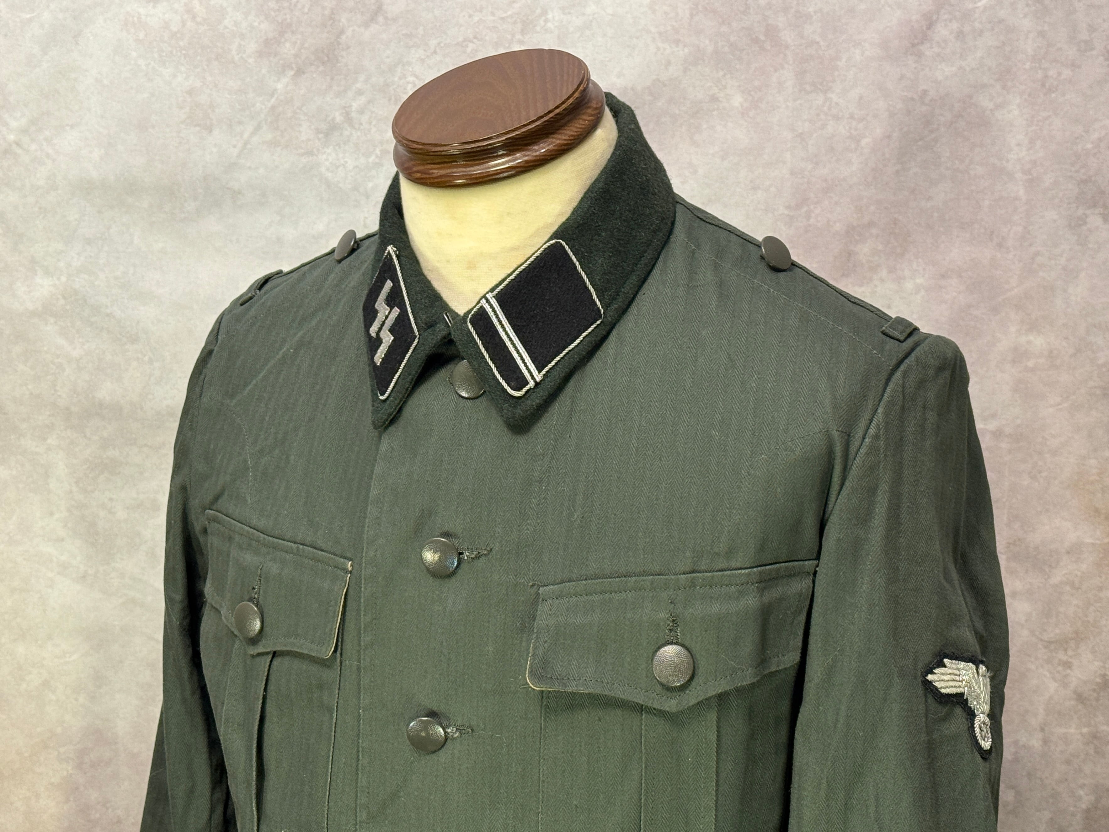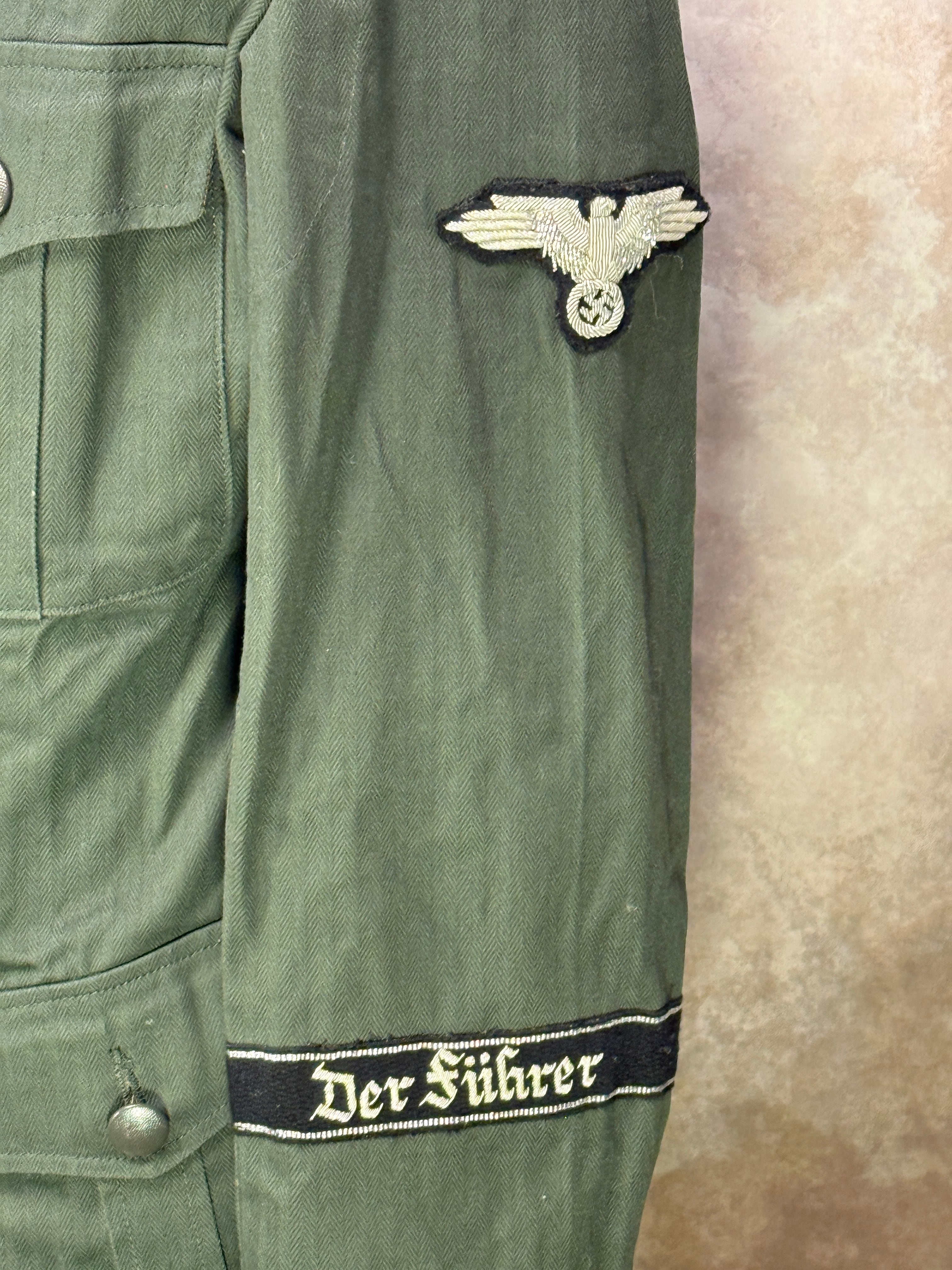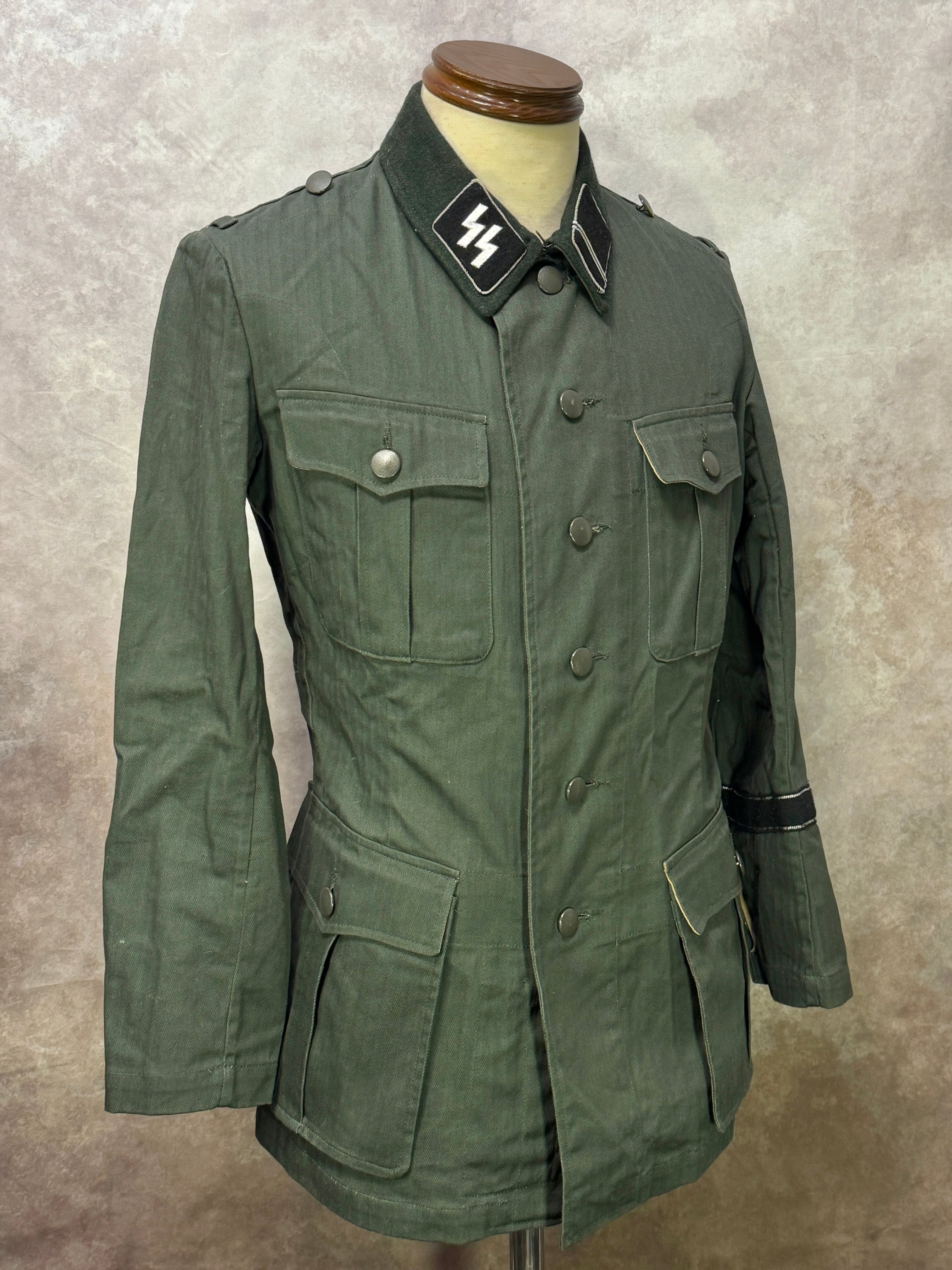 第二次世界大戦ドイツ軍のSSの徽章つきのHBT M36野戦服(M41野戦服濃緑襟)です。